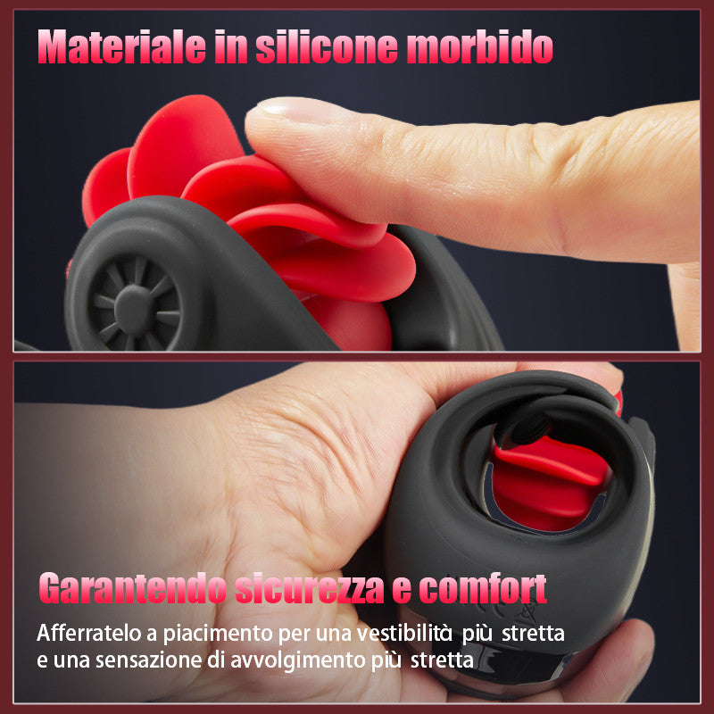Il nostro trainer masturbatore tornadet combina un design unico e caratteristiche innovative. Il mulinello a forma di spinner offre un'intensa stimolazione del glande, si può sentire l'ultima stimolazione come una lingua che lecca durante la rotazione, e la parete interna del corpo principale non ha solo fili delicati e sottili, ma anche una protuberanza che può essere battuta frequentemente, portandovi un'esperienza 3-in-1 multi-sfaccettata per portarvi intrattenimento fanatico del pene. La combinazione di nero e rosso rende l'aspetto semplice e fresco, mentre la struttura compatta rende il prodotto facile da trasportare. Grazie alla resistenza all'acqua IPX6, è facile da pulire e garantisce il massimo piacere orgasmico, sia che vi stiate divertendo in piscina o rilassandovi nella vasca da bagno. Il prodotto è realizzato in silicone e materiale ABS e la sensazione generale è morbida e liscia come la seta, per garantire la vostra sicurezza. Il massaggiatore è dotato di un potente motore con un totale di 20 livelli di frequenza, in modo da poter controllare il ritmo per trovare quello più adatto a voi, quindi se volete lavorare il vostro pene per ritardare l'eiaculazione, ridurre lo stress o semplicemente godervi un momento di beatitudine, questo dispositivo è perfetto per le vostre esigenze.