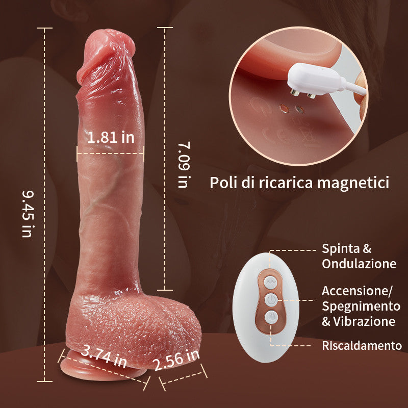 Spartan - Potente Dildo Realistico 4 IN 1 Telescopica Vibrazione Termostato 22CM