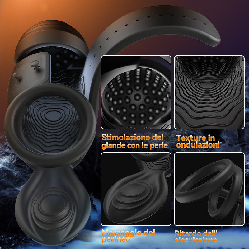 La sua "terapia" è sapientemente realizzata, con dense texture superiori che stimolano il tuo glande per un'eccitazione precisa, mentre le creste a spirale media massaggiano l'asta, aiutando a ridurre la sensibilità e prolungare la tua esperienza. Con il telecomando, hai il pieno controllo: che tu ti stia godendo il tempo da sola o esplorando con un partner, la sua presenza costante e delicata è lì, lasciandoti abbracciare il tuo stato di piacere migliore e più rilassato.