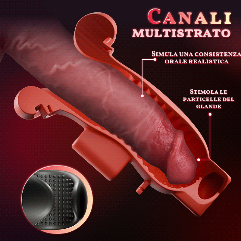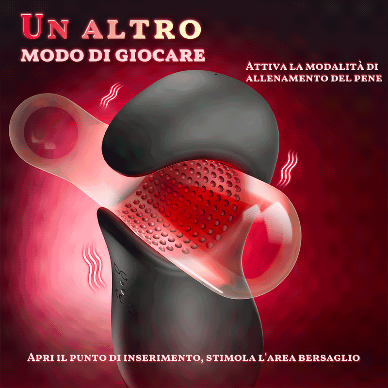 - 9 vibrazioni potenti, abbinate a una texture interna granulare, che offrono una stimolazione intensa al glande;