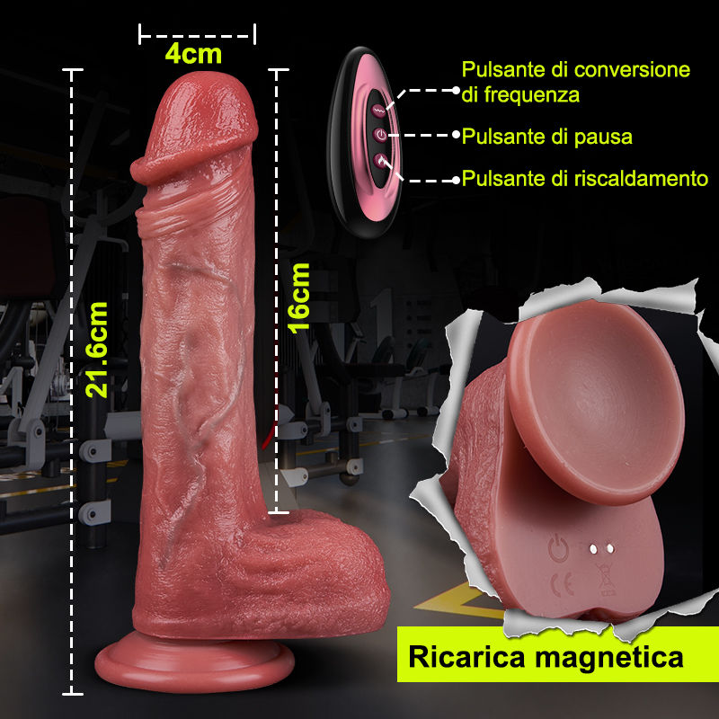 Jazz—Vibrazione a 9 frequenze + dildo telescopico a 3 frequenze, glande e testicoli super simulati, riscaldabile