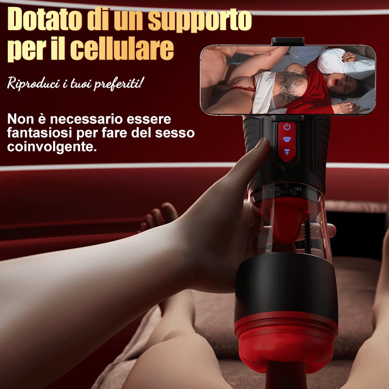 Viene fornito con un supporto per cellulare, che consente di godere dei tuoi film porno preferiti mentre hai un orgasmo del pene, doppia stimolazione di sensazioni visive e fisiche!