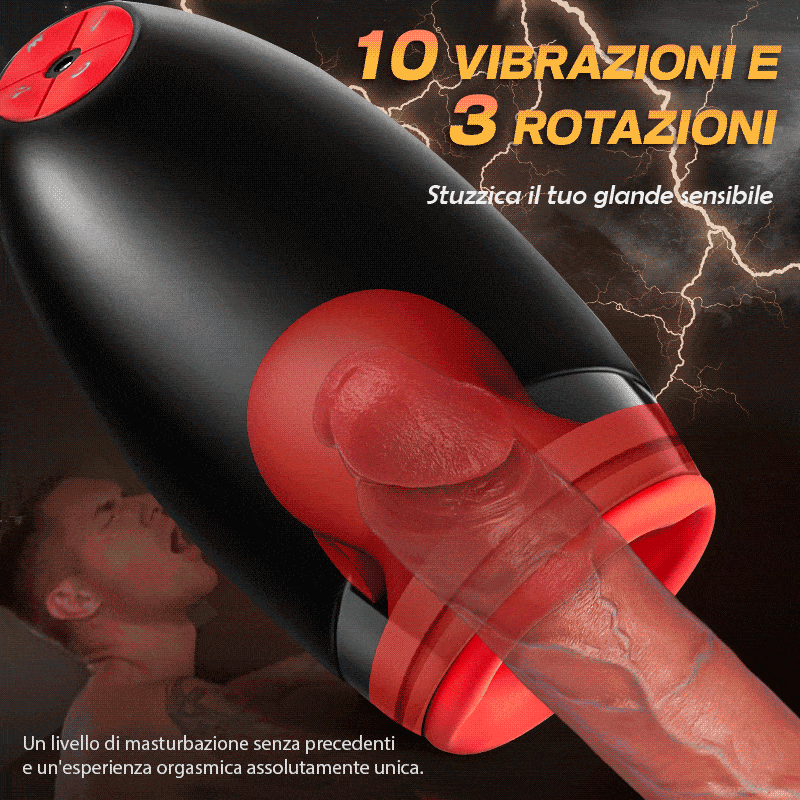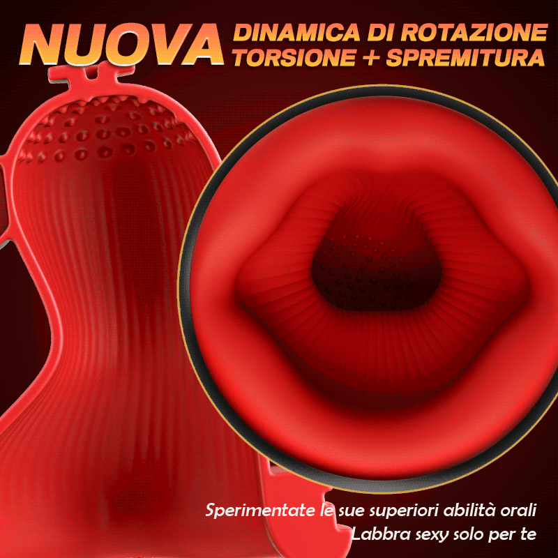 Motore specializzato, design dinamico senza precedenti, traiettoria rotante che riproduce altamente gli orgasmi orali e vaginali, torsione e pizzicotti, permettendo a “lei” di tenere il glande, portandovi al piacere assoluto;