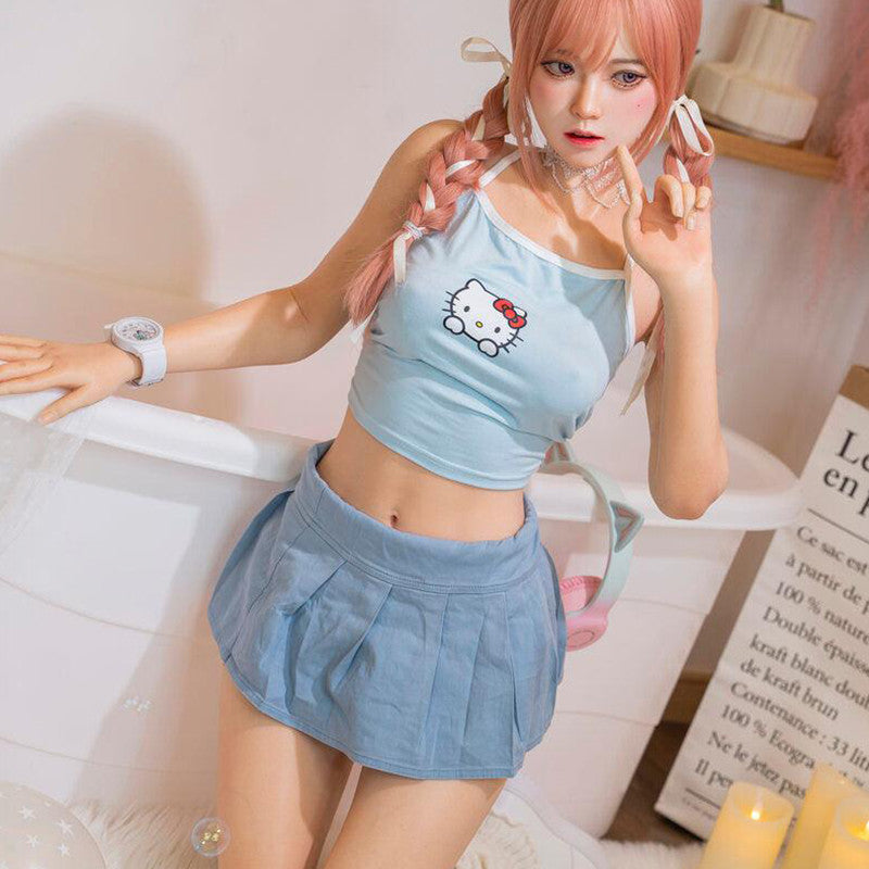 Nella città dei dolci sognanti, vive una ragazza di nome Pink Sakura Katie Sweetheart. Ha lunghi capelli rosa come i fiori di ciliegio e indossa sempre delle giocose doppie code di cavallo con fiocchi bianchi legati alle estremità dei capelli, come una farfalla danzante che resta tra i suoi capelli. La preferita di Pink Sakura Katie Sweetheart è Hello Kitty. Pensa che Hello Kitty sia la compagna più carina del mondo, quindi i suoi vestiti sono sempre stampati con graziosi motivi di Hello Kitty. Questo gilet azzurro e la gonna corta sono i suoi preferiti. Il fresco blu sembra far sentire alle persone l'odore della brezza estiva e la dolce fragranza floreale.